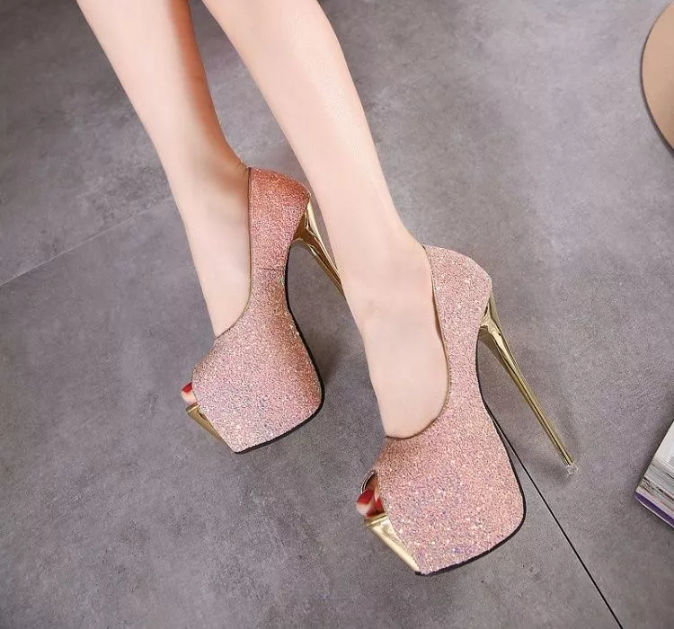 Decolte Rosa Glitter Tacco 16 Cm Con Plateau Oro Alte Look Eleganti CF59609