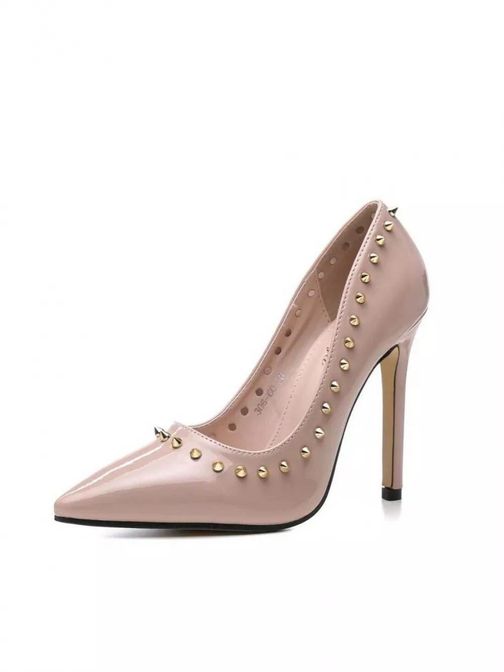 decolte scarpe 12 cm stiletto alti rosa oro borchie lucido pelle sintetica 2001
