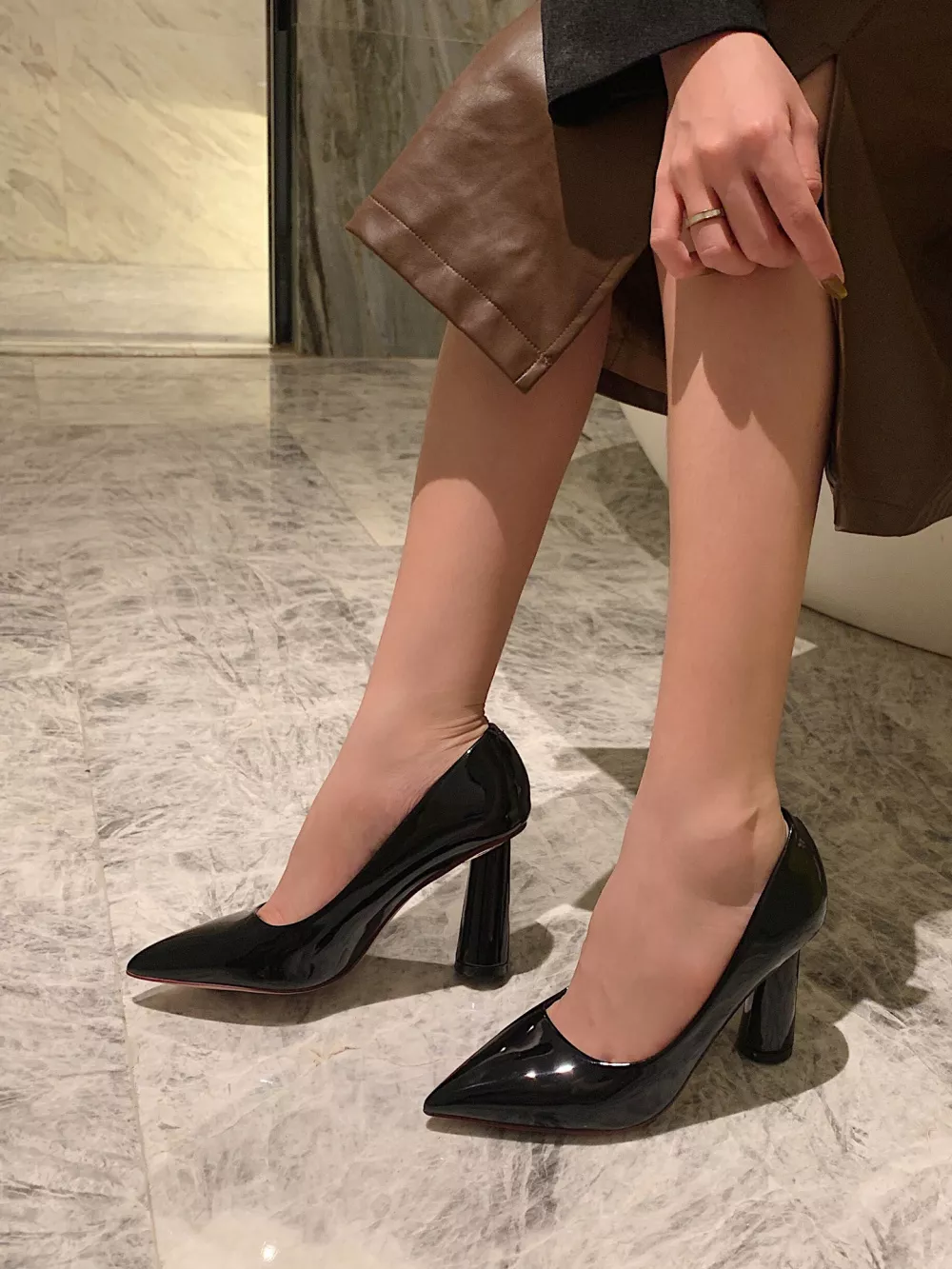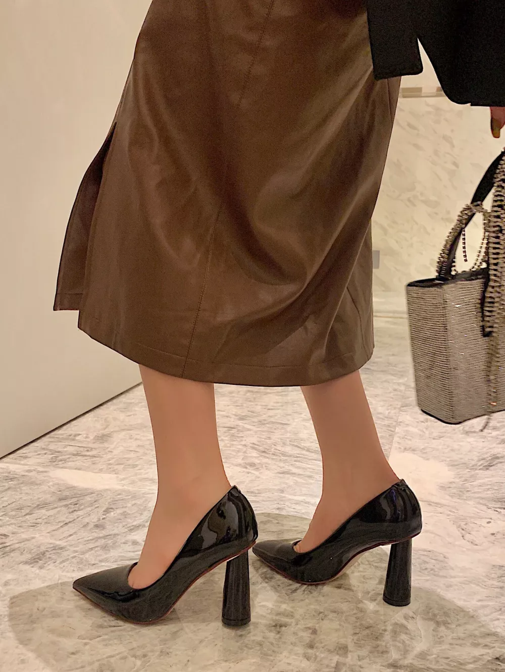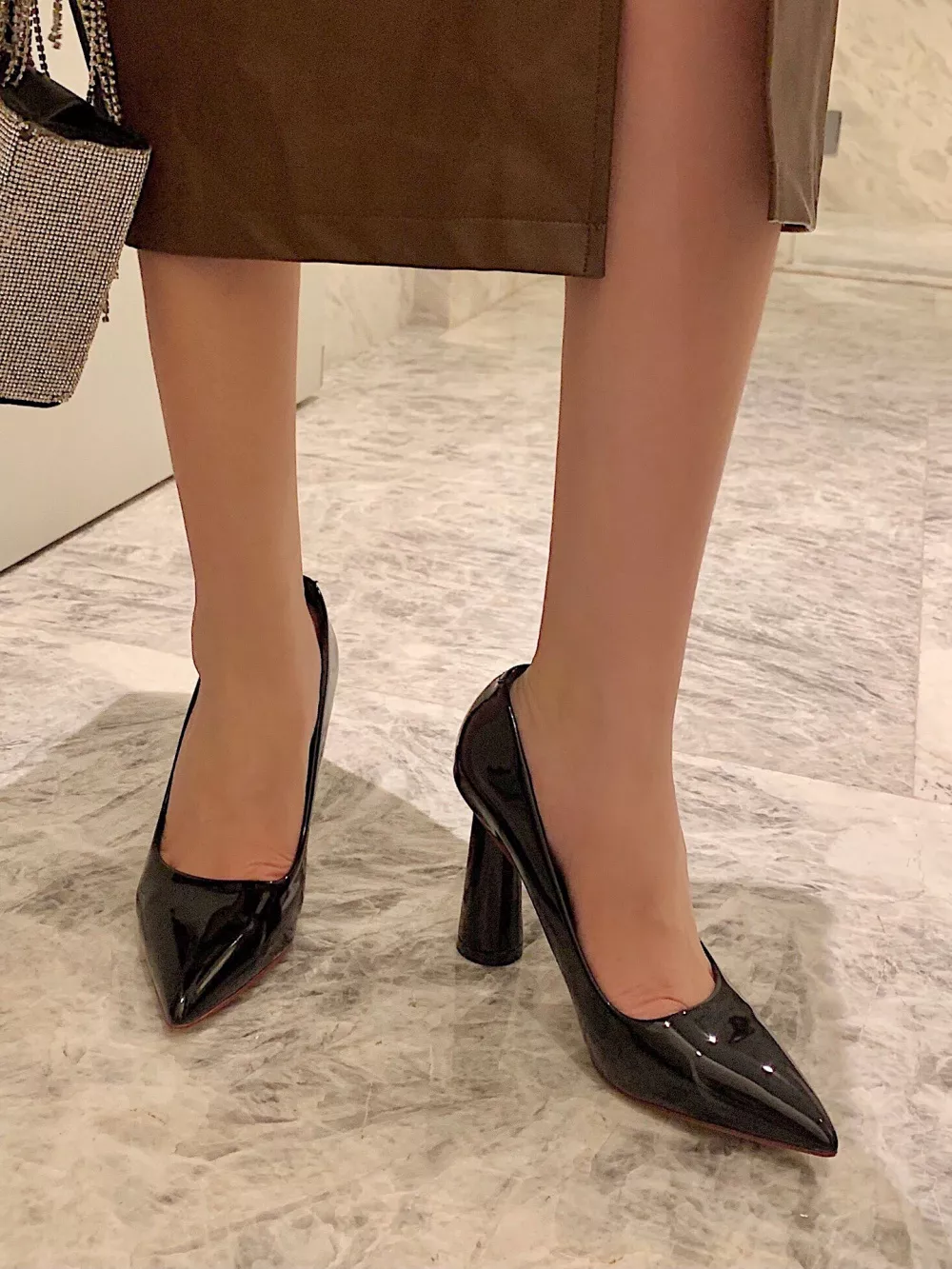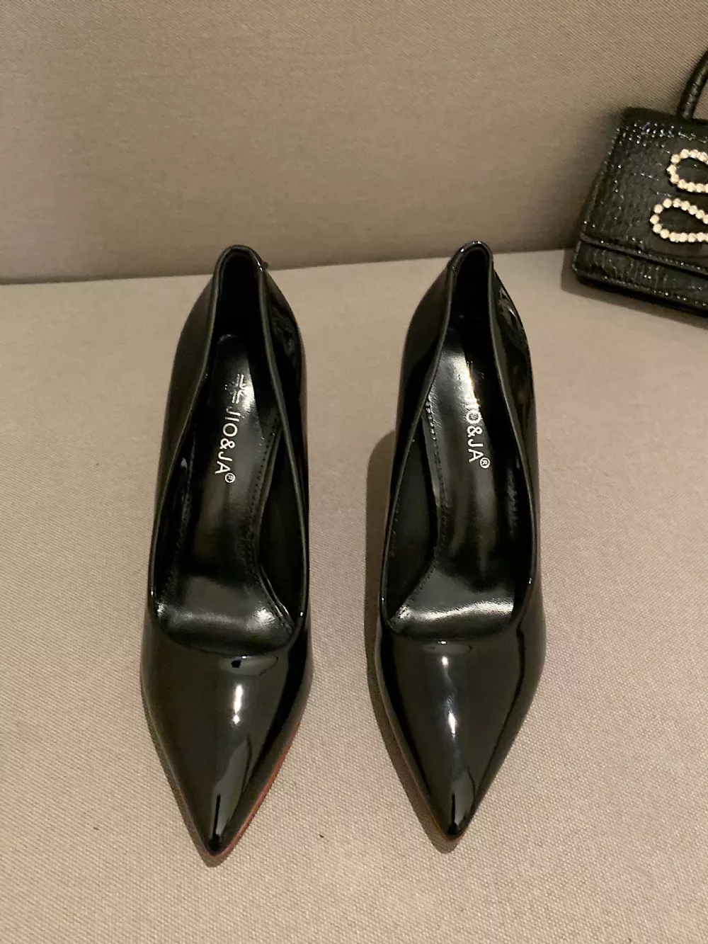 Decolte scarpe donna nero lucido a punta comode tacco 10 cm pelle sintetica CZ372
