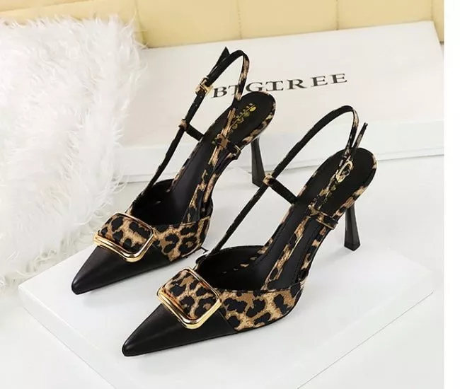 Scarpe slingback raffinate con cinturino regolabile e tacco sottile di 8 cm, perfette per slanciare la silhouette. La punta affusolata con fibbia decorativa e inserti animalier dona carattere e femminilità, rendendole ideali per cerimonie, eventi eleganti o serate glamour. Un modello versatile che unisce comfort e stile, perfetto per chi desidera distinguersi con eleganza moderna.