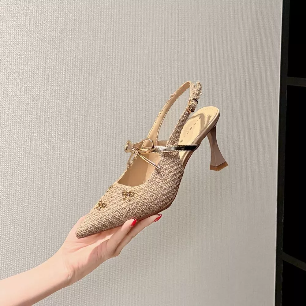 Decolte slingback dal design elegante e femminile, caratterizzate da una lavorazione testurizzata raffinata e dettagli decorativi con piccoli fiocchi che valorizzano la silhouette.