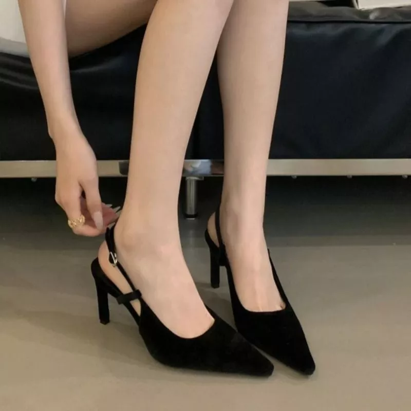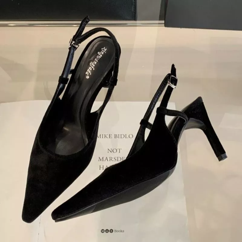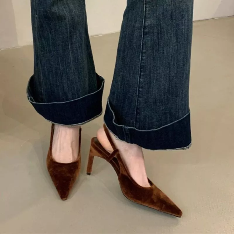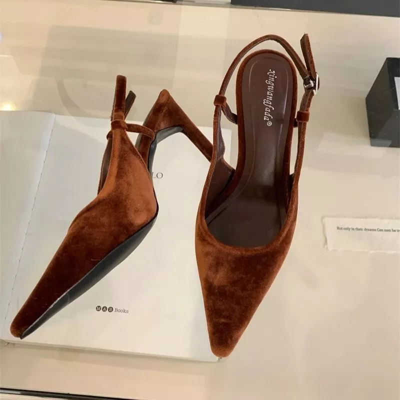 Decolte Slingback Donna Eleganti Tacco Alto Marrone Nero Scamosciato CF6S21