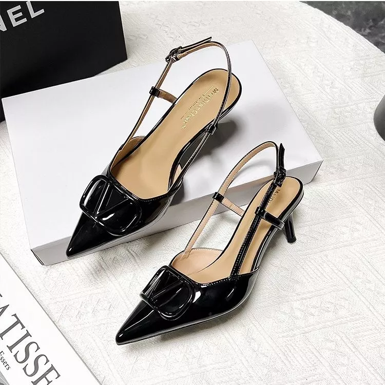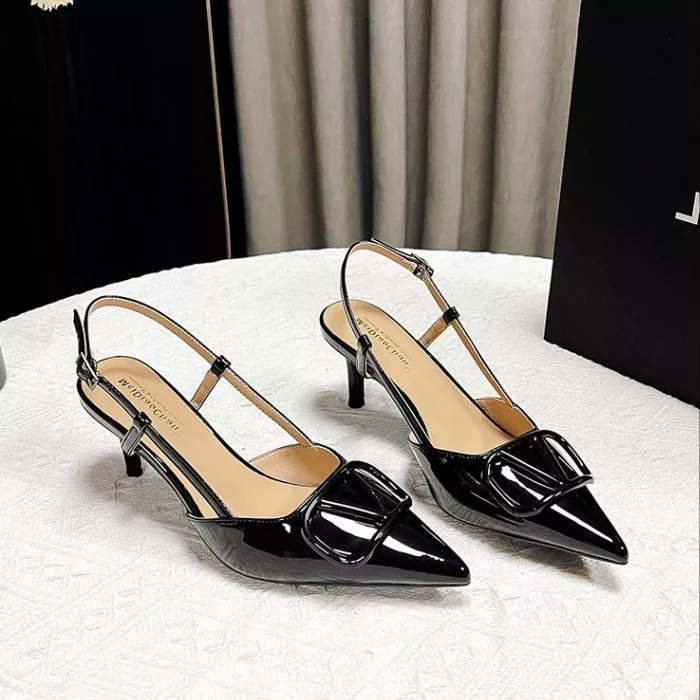 Décolleté slingback dal design sofisticato con punta affusolata e tacco medio da 6 cm, perfette per valorizzare outfit eleganti, look da ufficio e cerimonia. La silhouette slanciata dona armonia alla figura mentre la fibbia frontale decorativa aggiunge un dettaglio raffinato e contemporaneo.