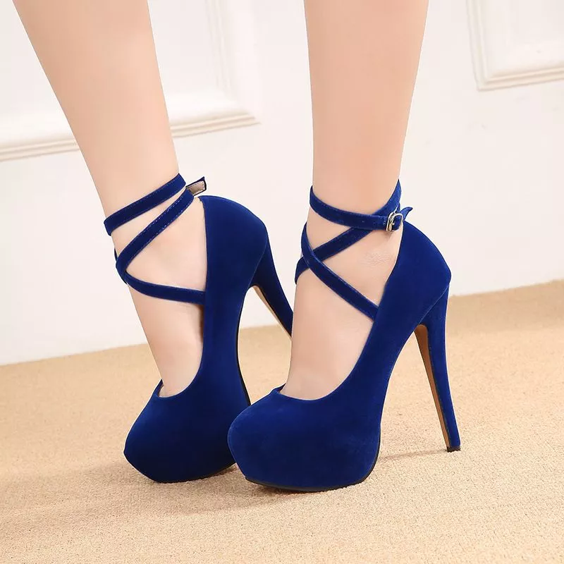 Decolte Tacco Alto Plateau Cinturino Eleganti Cerimonia Blu CF66656