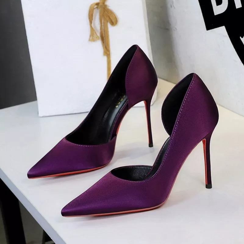 Decollete Raso Porpora Tacco 10 Cm Design Aperto Chic Moda Donna CF60316