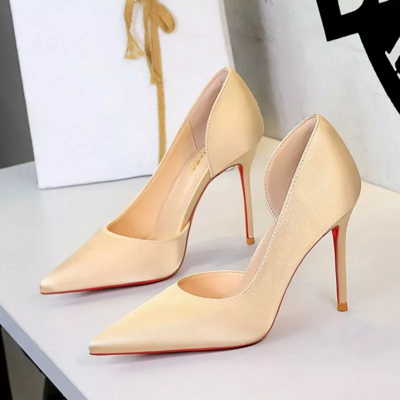 Decollete Raso Champagne Tacco 10 Cm Design Aperto Look Femminile CF60316