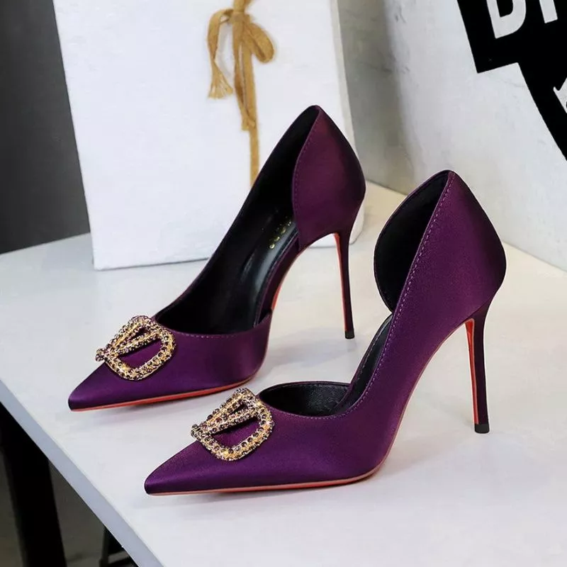 Decolte Donna Eleganti Viola Con Fibbia Gioiello Tacco Alto 10 cm CF65357