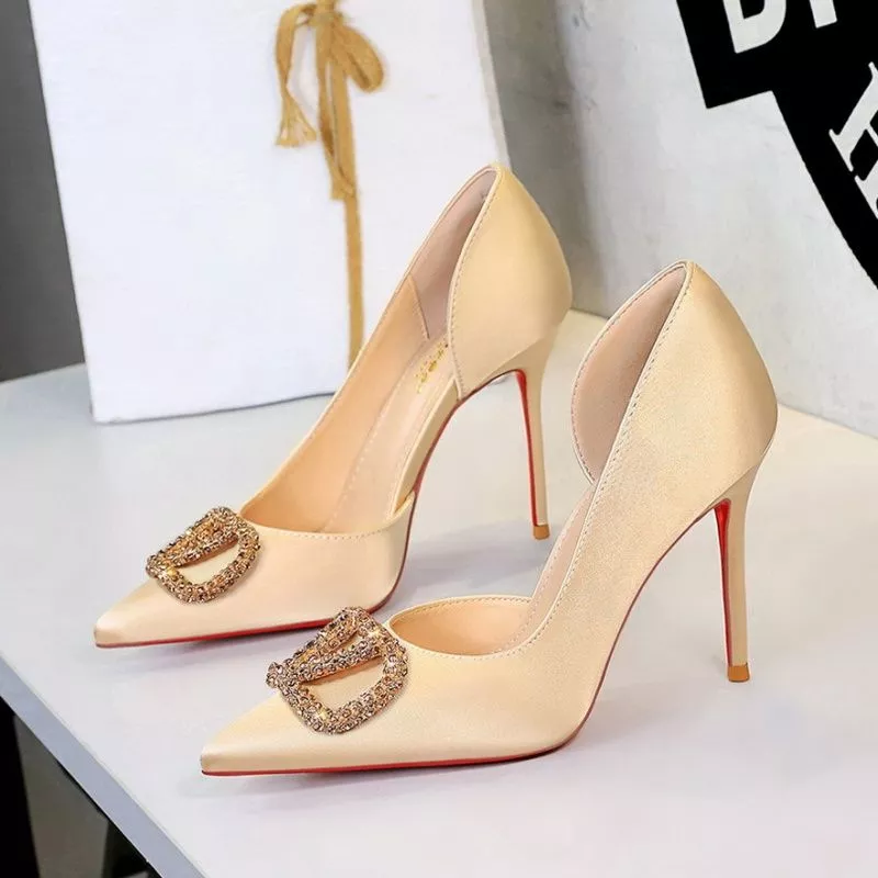 Decolte Donna Eleganti Champagne Con Fibbia Gioiello Tacco Alto 10 cm CF65357