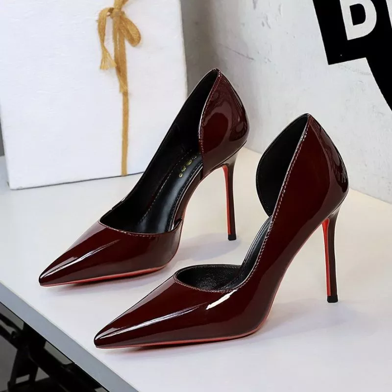 Decolte Donna Eleganti A Punta Con Tacco 10 cm Vernice Borgogna CF65412