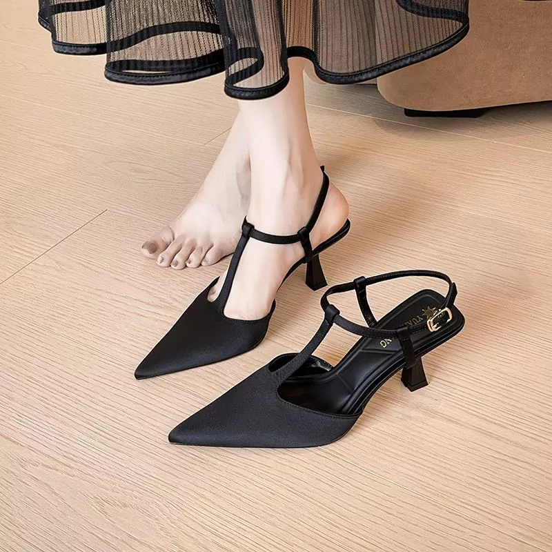 Decolte Nere Eleganti A Punta Con Cinturino E Tacco 7 Cm Cerimonia CF54073