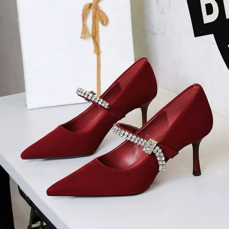 Decolte Rosso Vino Tacco 7 Cm Punta Affusolata Cinturino Strass Donna CF60315