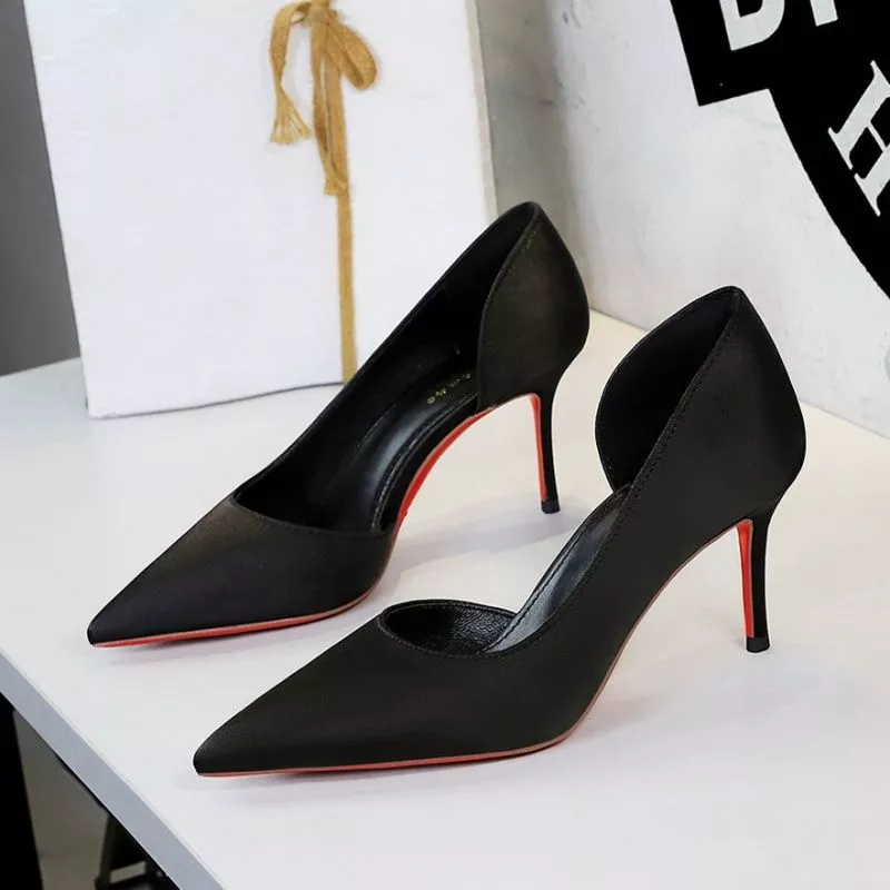 Decolte Nero Tacco 7,5 Cm Design Aperto Elegante Suola Rossa Look Chic CF60320