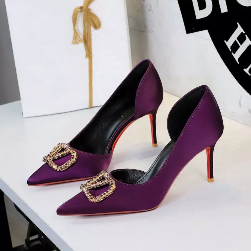 Decolte Donna Raffinate A Punta Con Tacco 7.5 cm Fibbia Decorativa Viola CF65413