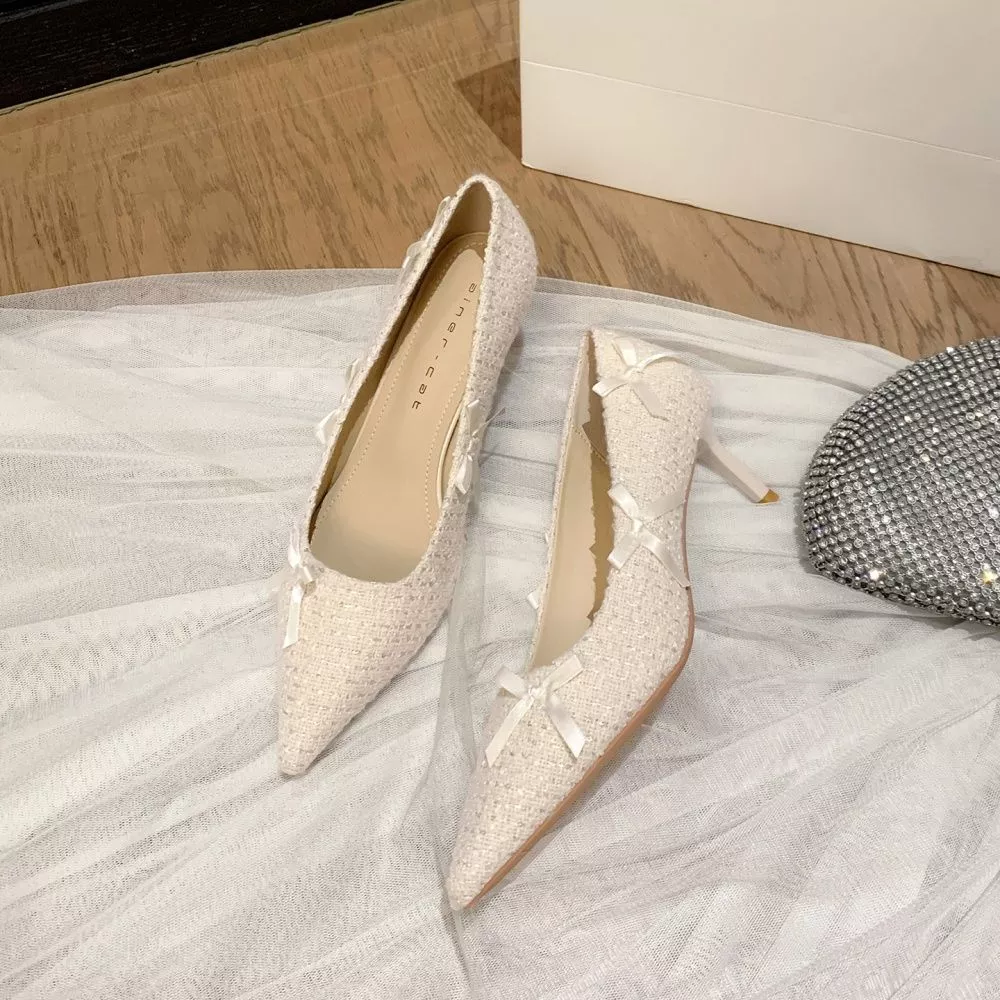 Decolte Donna Cerimonia A Punta Tacco 6 cm E Dettagli Fiocco Albicocca CF66110