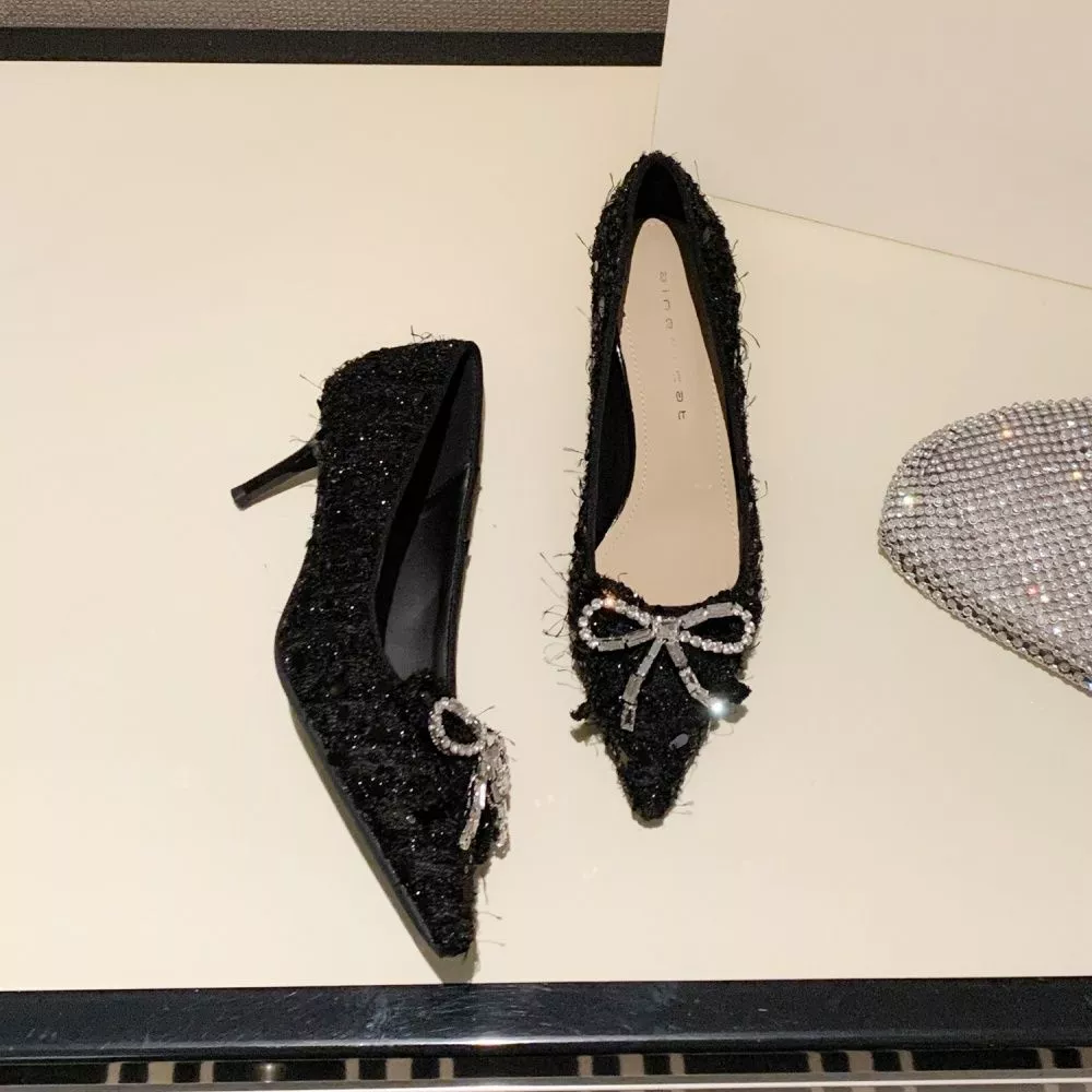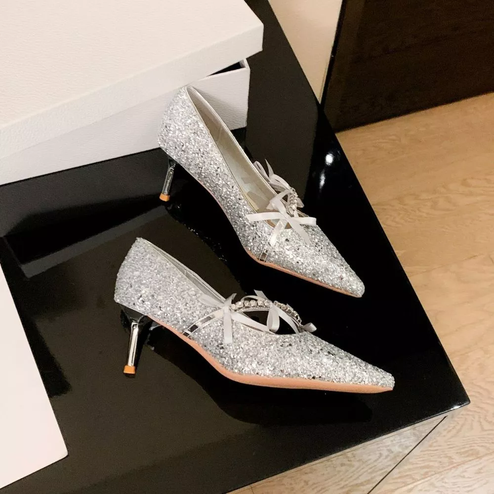 Decolte Eleganti Con Tacco 6 cm In Paillettes Fiocchi Decorativi Argento CF66114