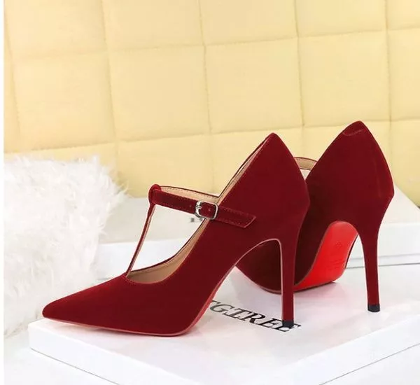Decolte Vino Rosso A Punta Cinturino E Tacco 10 Cm Effetto Scamosciato CF54367