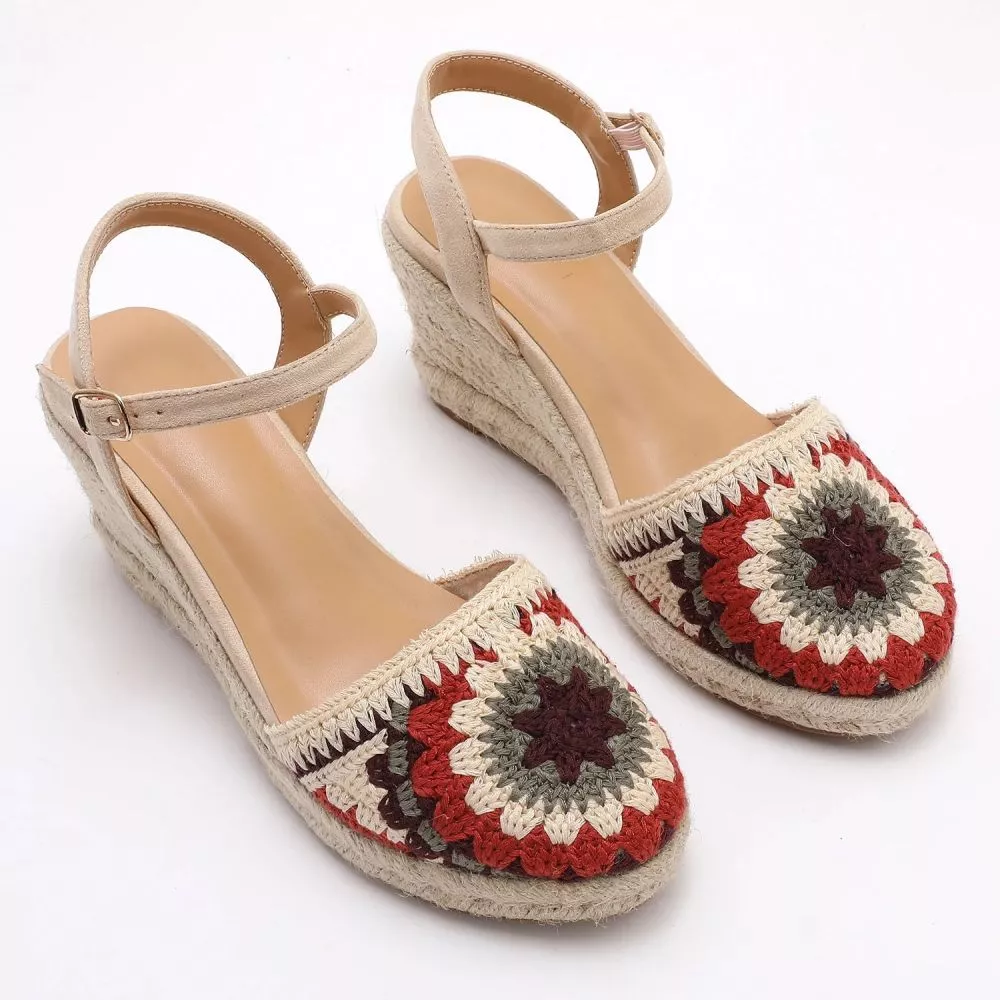 Espadrillas Donna Zeppa Beige Crochet Ricamato Sandalo Boho Estivo 58954