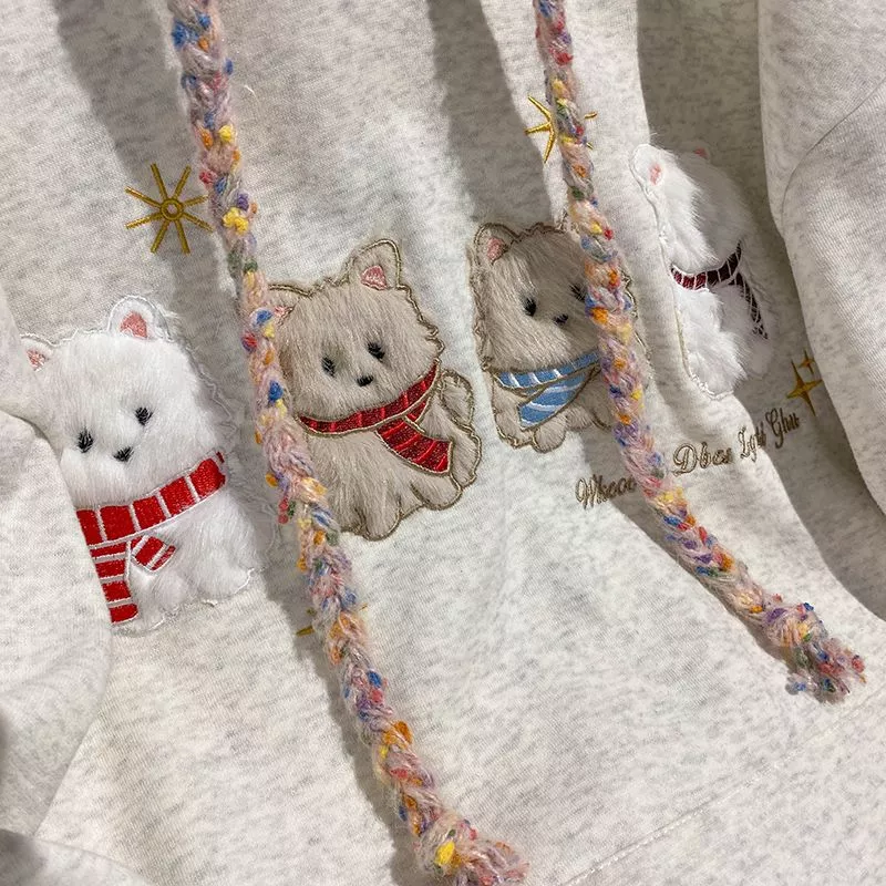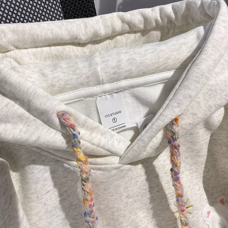 Questa felpa avorio dal design morbido e caldo combina stile casual e dettagli ricercati grazie ai ricami frontali di piccoli animaletti e alla coulisse multicolore che aggiunge un tocco giocoso. Il tessuto soffice e la forma comoda la rendono ideale per il tempo libero, per outfit rilassati ma curati o per creare look confortevoli nelle giornate più fresche. Il cappuccio ampio aggiunge praticità, trasformandola in un capo perfetto per chi ama unire comfort e unicità.