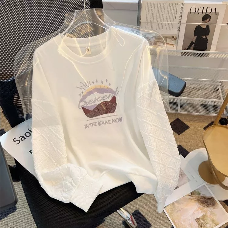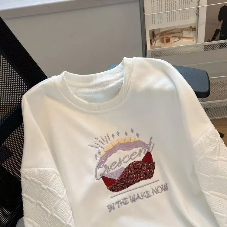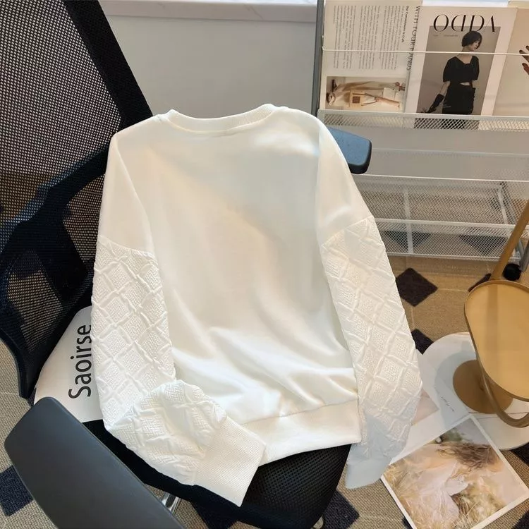 Felpa bianca da donna con stampa ricamata e dettagli brillanti sul davanti, perfetta per chi ama unire stile casual e tocchi fashion. Le maniche lunghe con lavorazione a rilievo donano carattere al modello, rendendolo ideale da abbinare a jeans o pantaloni sportivi per un look moderno e versatile. Realizzata in tessuto sintetico morbido e confortevole, è un capo must-have per la stagione.