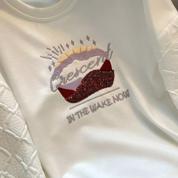 ✨ Dettagli: Ricamo frontale con glitter, maniche lunghe lavorate a rilievo
