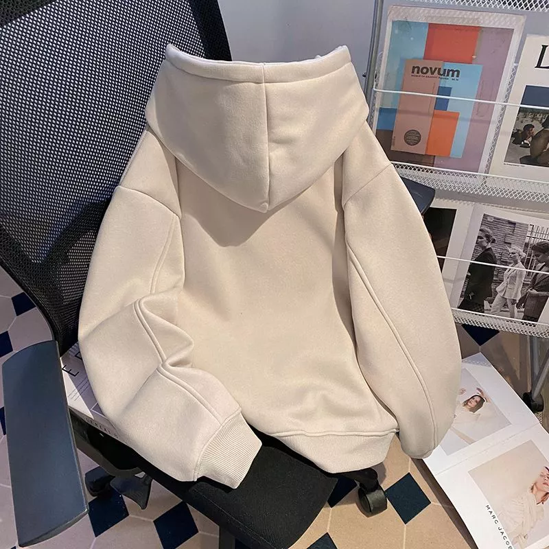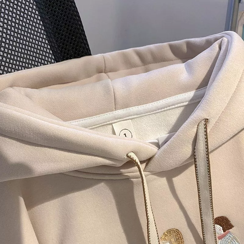 Felpa Donna Con Cappuccio Beige Oversize Ricamo Frontale Casual CF66419