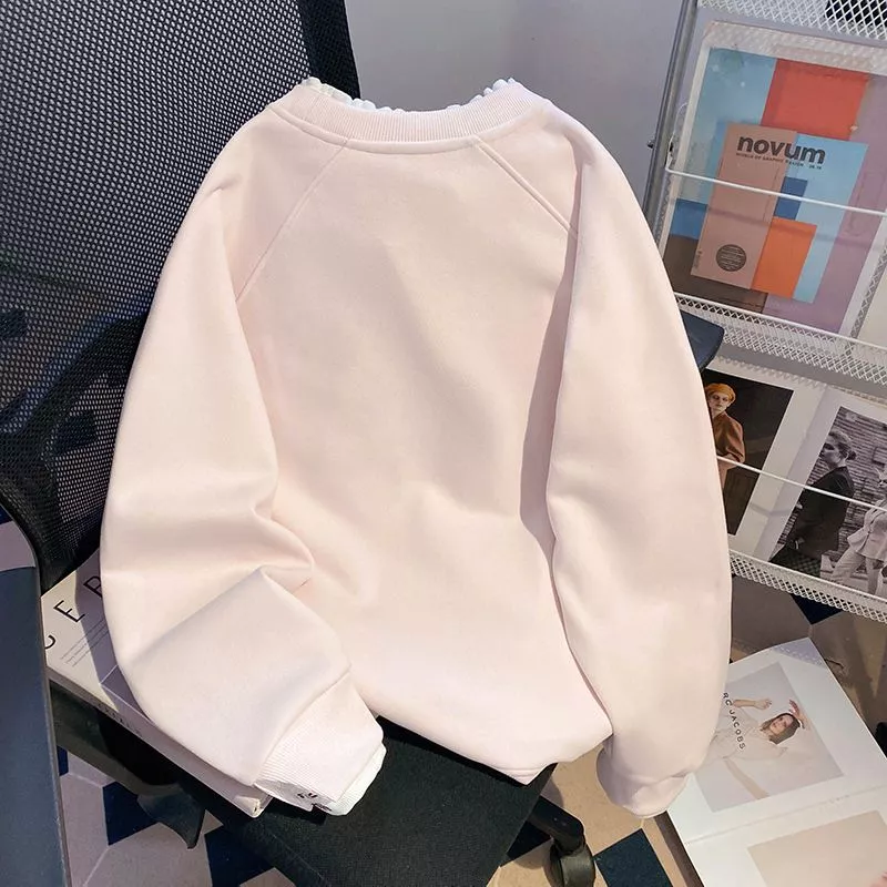 Felpa Donna Rosa Gattini Ricamo Girocollo Oversize CF66418
