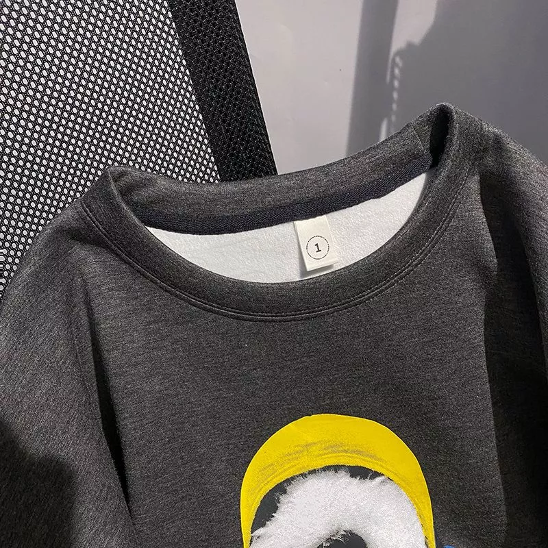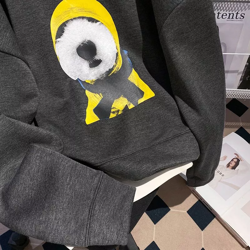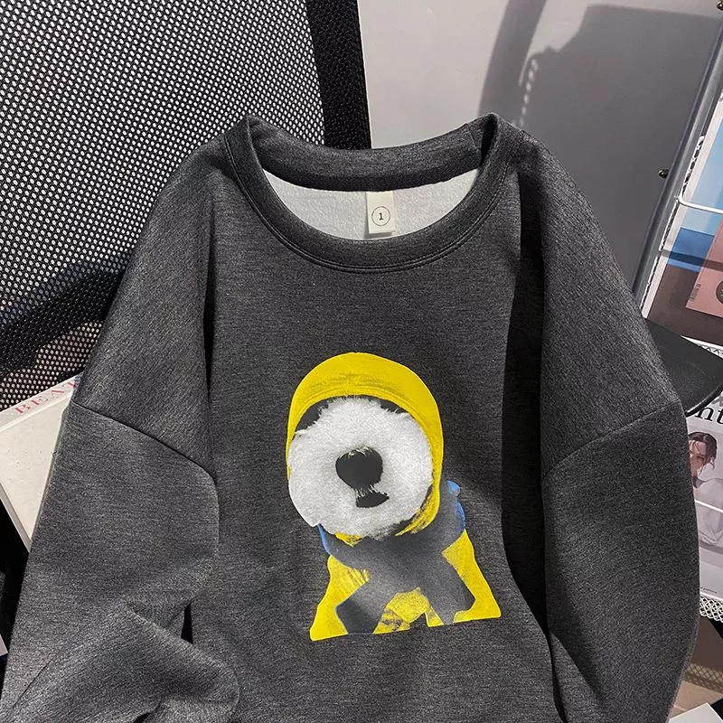 Felpa Grigio Scuro Calda Morbida Con Stampa Cane Cappuccio Giallo Casual CF58769