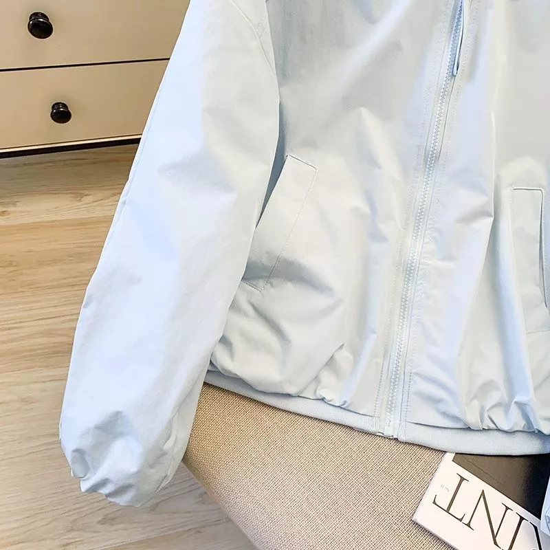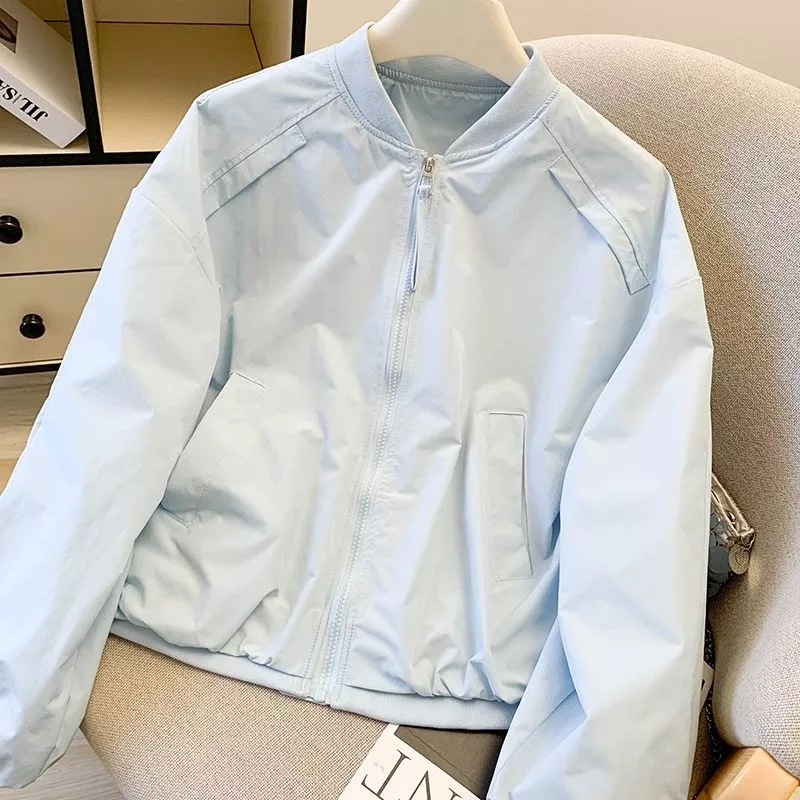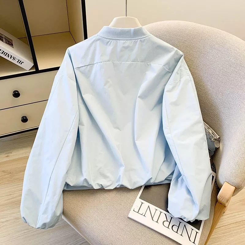 Giacca Azzurra Leggera Casual Colletto A Costine Stile Urbano Donna CF58377