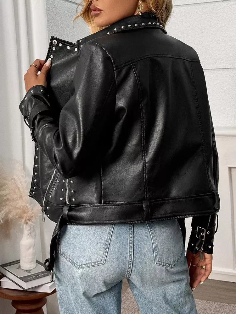 Giacca Biker Donna Pelle Sintetica Borchie Slim Fit Zip Casual Chic BKF2611