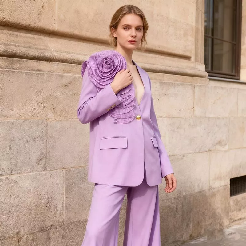 Giacca Cerimonia Fiore Scultoreo Porpora Lilac Outfit Elegante Donna 59332
