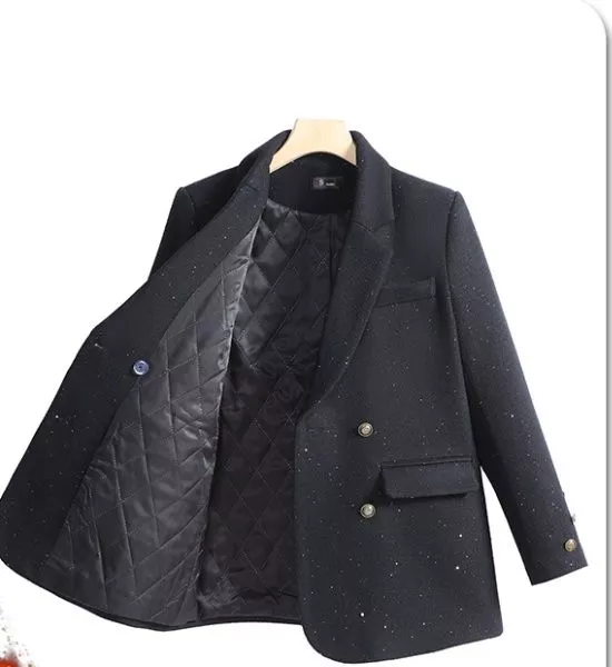 Giacca Doppiopetto Elegante Invernale Foderata Bottoni Oro Nero CF60134
