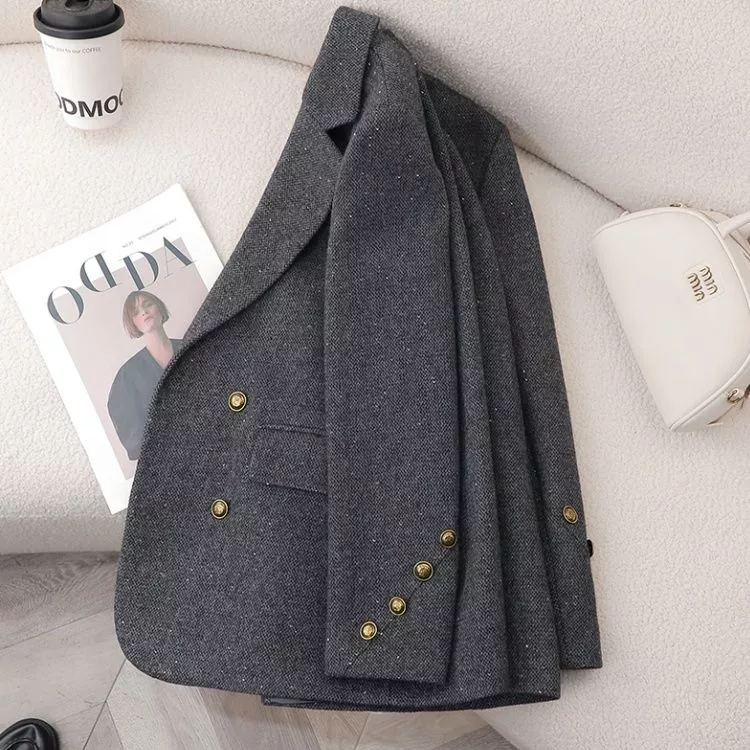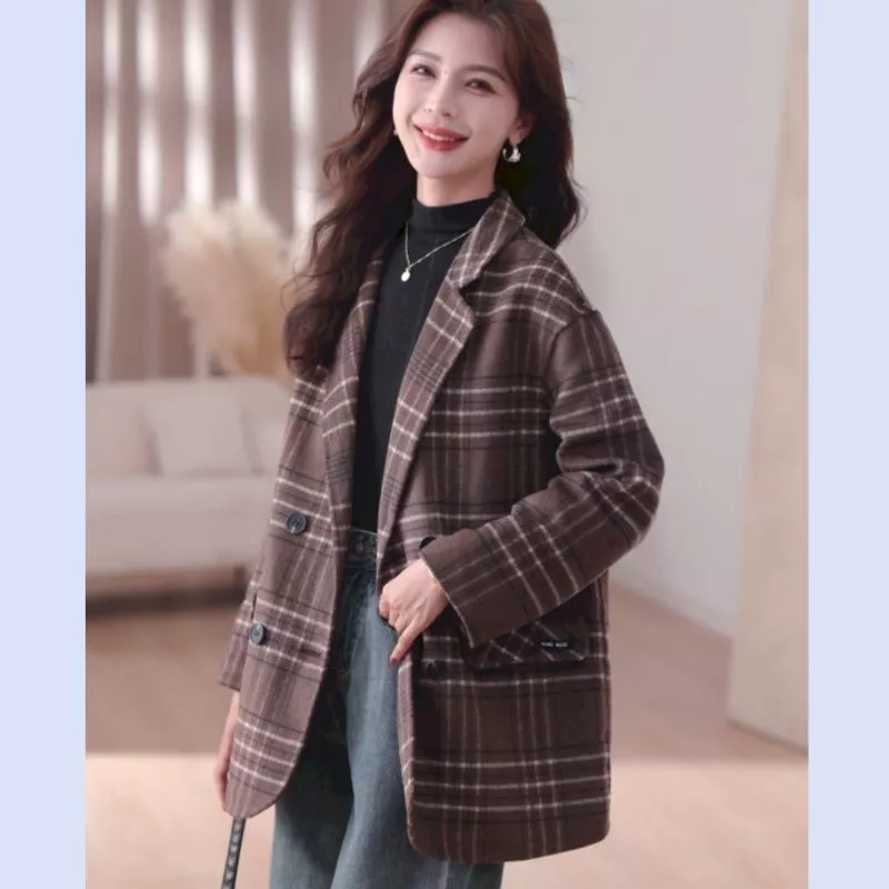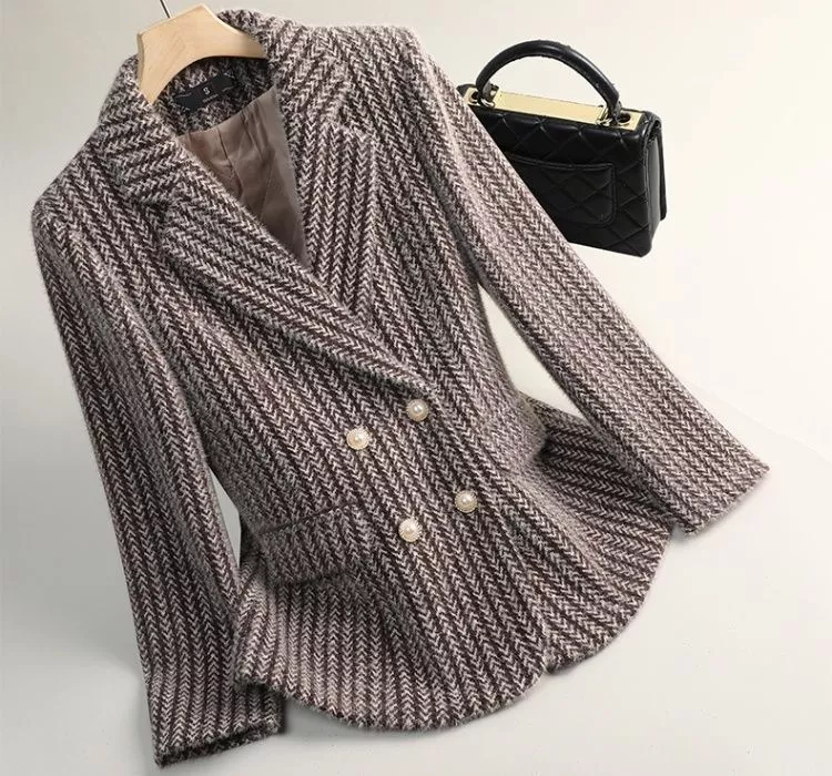 Giacca Donna Elegante Fantasia Doppiopetto Calda Autunnale Marrone CF60630