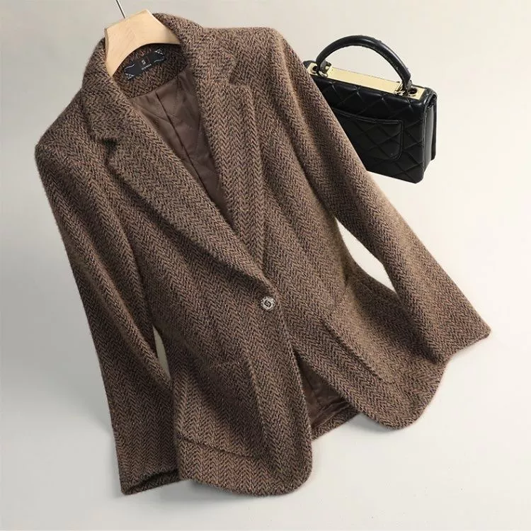 Giacca Elegante Invernale Tweed Foderata Monopetto Marrone Stile Moderno CF60136