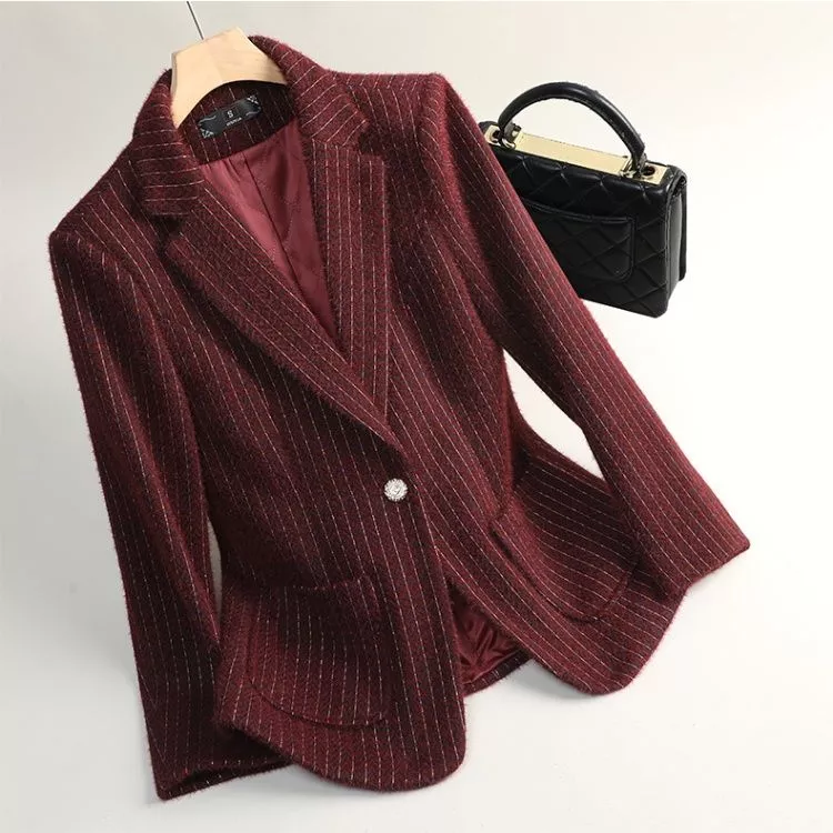 Giacca Elegante Invernale Rigata Foderata Monopetto Rosso Scuro Chic CF60136