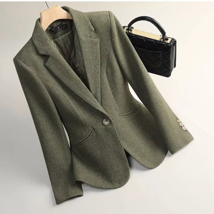 Blazer Elegante Tessuto Morbido Monopetto Verde Oliva Linea Svasata CF60138