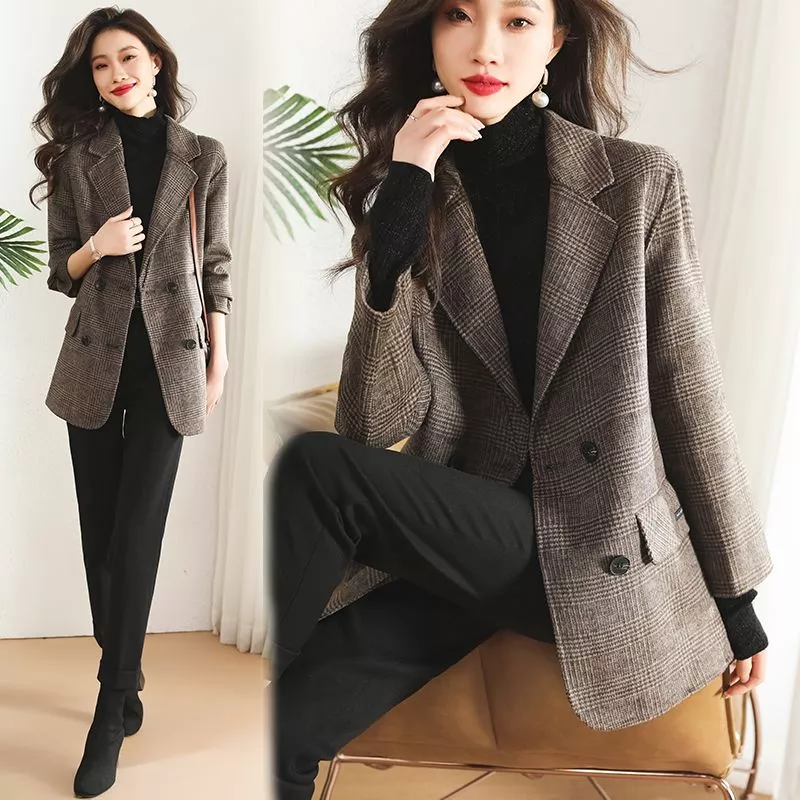 Blazer Donna Elegante Fantasia Pied De Poule Doppiopetto Chic Autunno CF60630