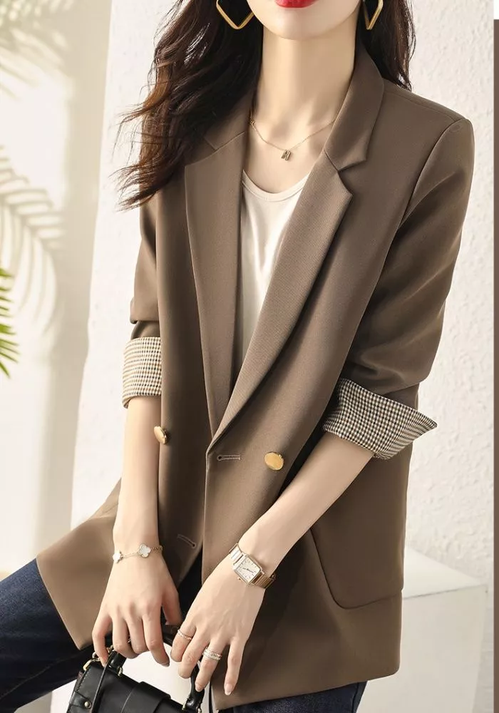 Giacca Donna Marrone Elegante Doppiopetto Blazer Da Ufficio Slim CF61642