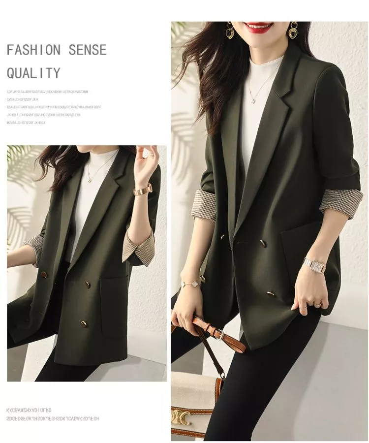 Giacca Donna Verde Scuro Elegante Doppiopetto Blazer Da Ufficio CF61642