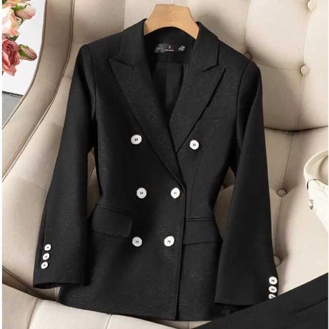 Blazer Donna Elegante Nero Doppiopetto Giacca Sartoriale Slim Fit CF68421