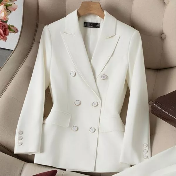 Blazer Donna Elegante Bianco Doppiopetto Giacca Ufficio Sartoriale CF68421