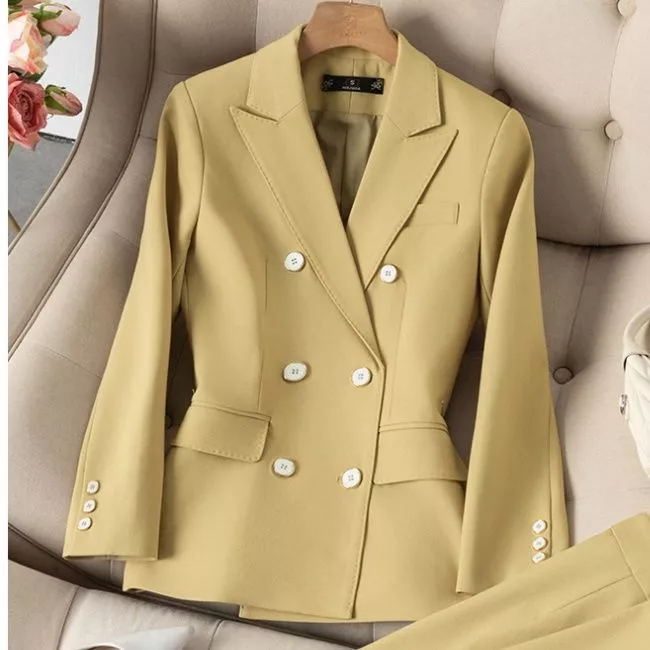 Blazer Donna Elegante Senape Doppiopetto Giacca Ufficio Sartoriale CF68421