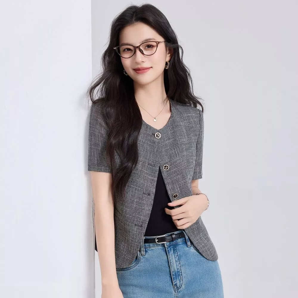 Giacca Elegante Donna Corta Manica Corta Blazer Leggero Albicocca CF68532