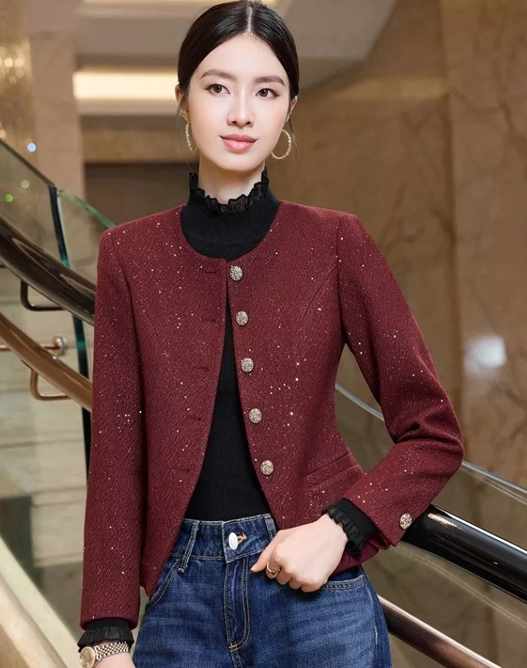 Giacca Bordeaux Elegante Bottoni Gioiello Silhouette Femminile Chic CF59565