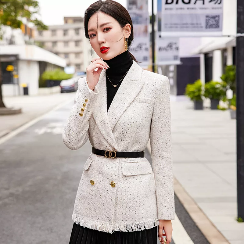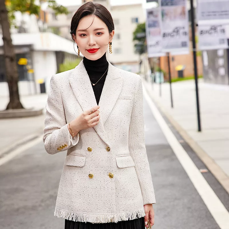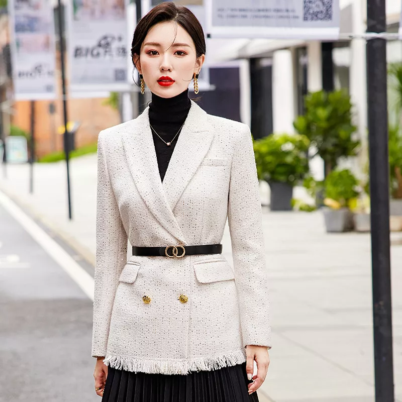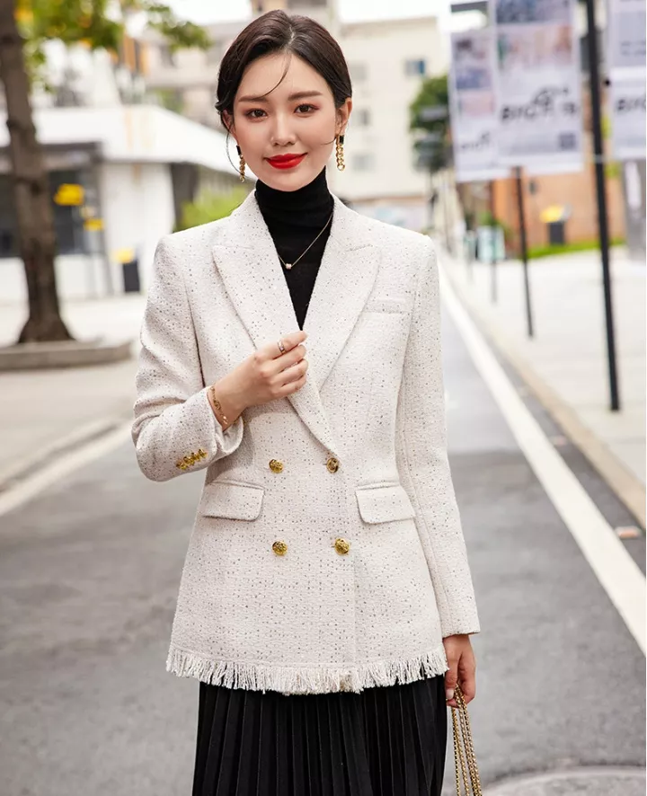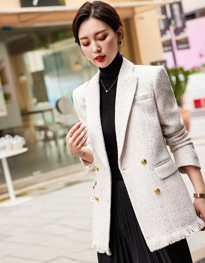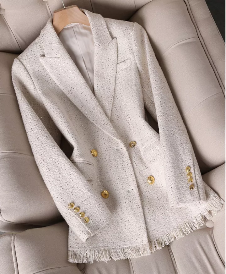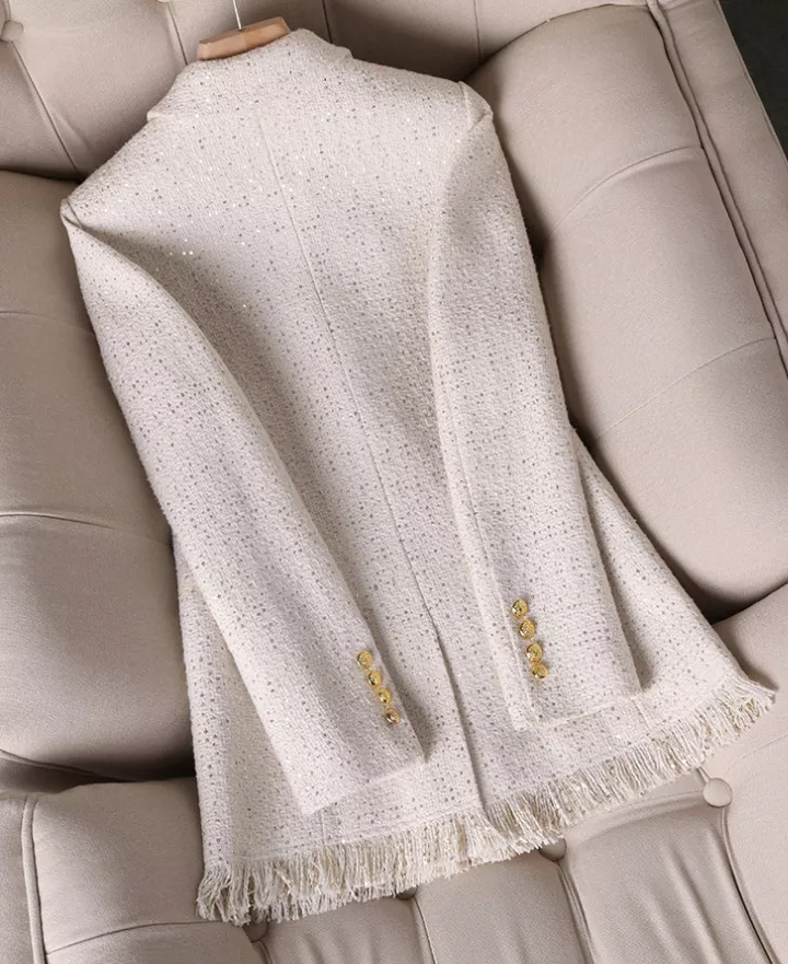 Giacca Cappotto Donna Blazer Spezzato Ufficio Slim Fit Beige Tweed Slim 38231