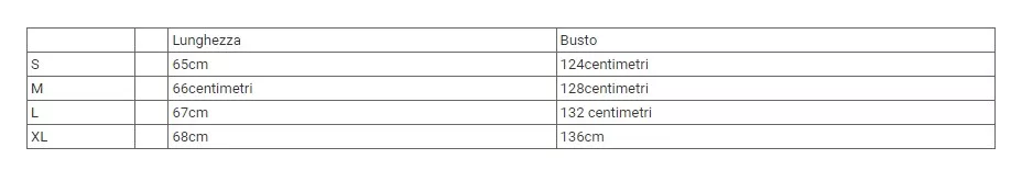 a seguire la tabella taglie