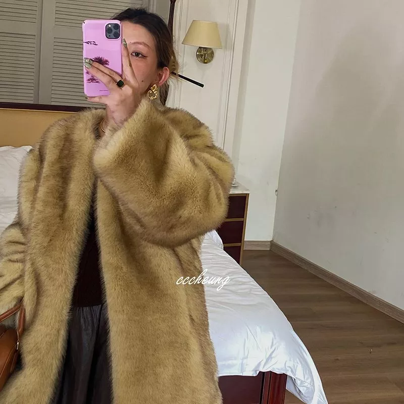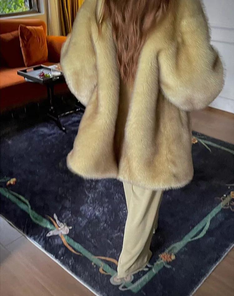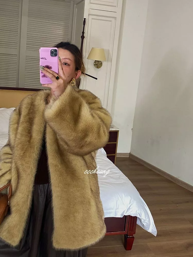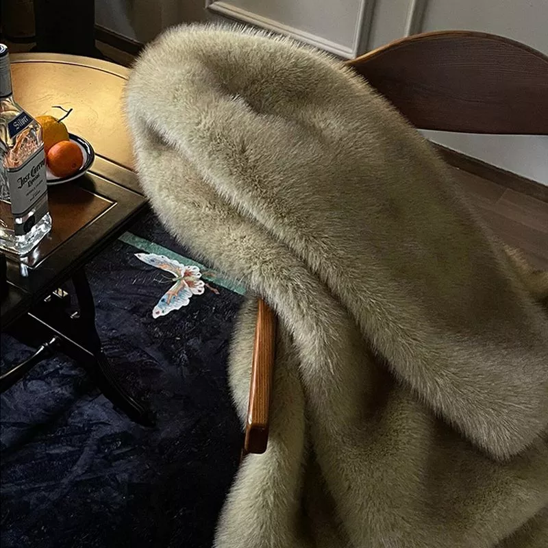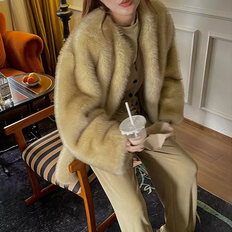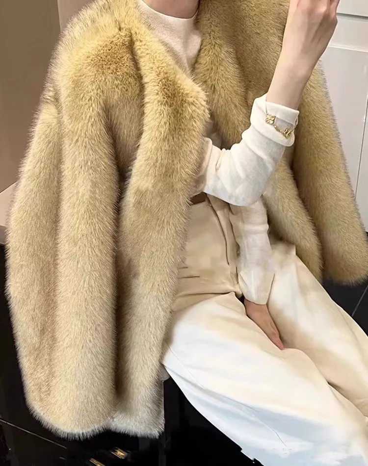 Giacca Cappotto Pelliccia Donna Ecologica Sintetica Morbida Beige 30489