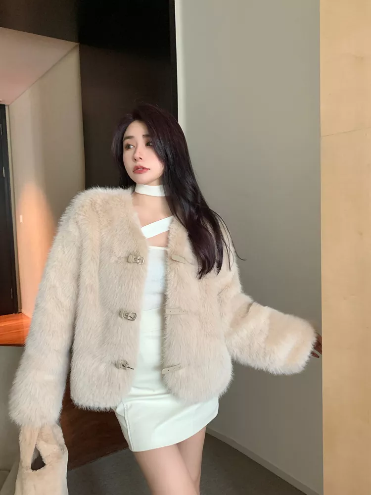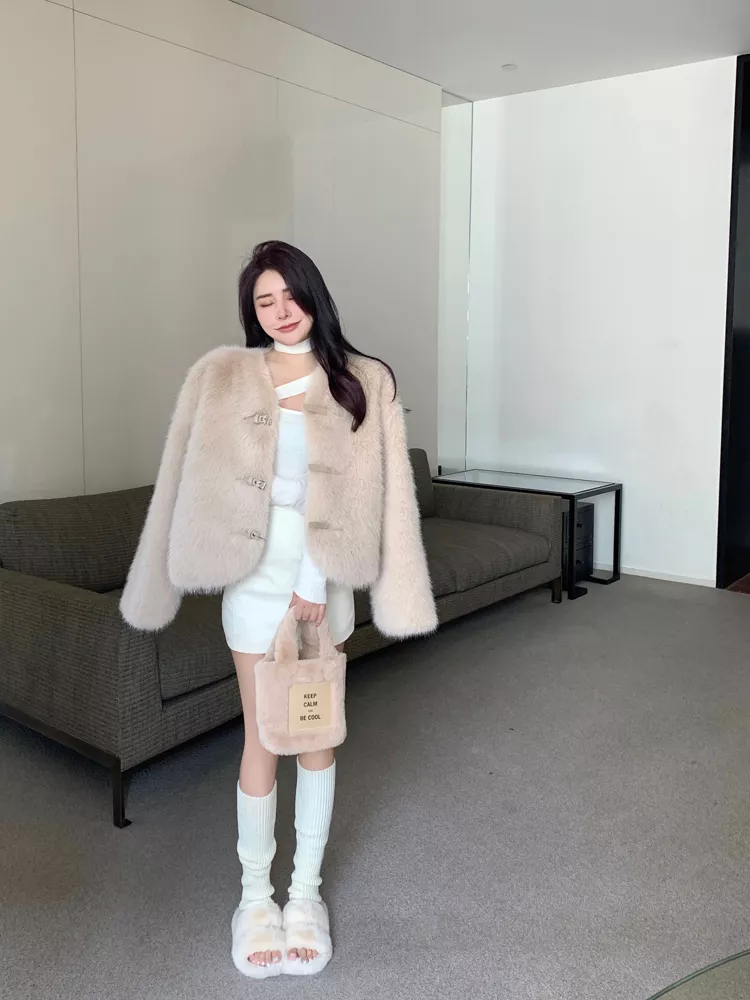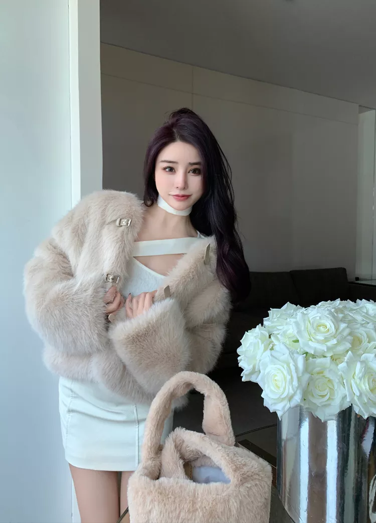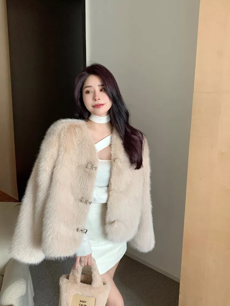 Giacca Cappotto Pelliccia Donna Ecologica Sintetica Morbida Beige 43966