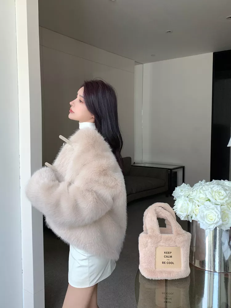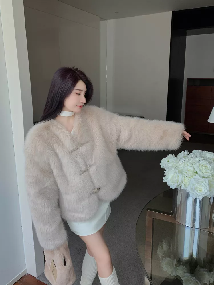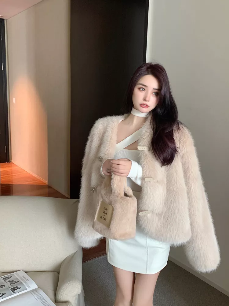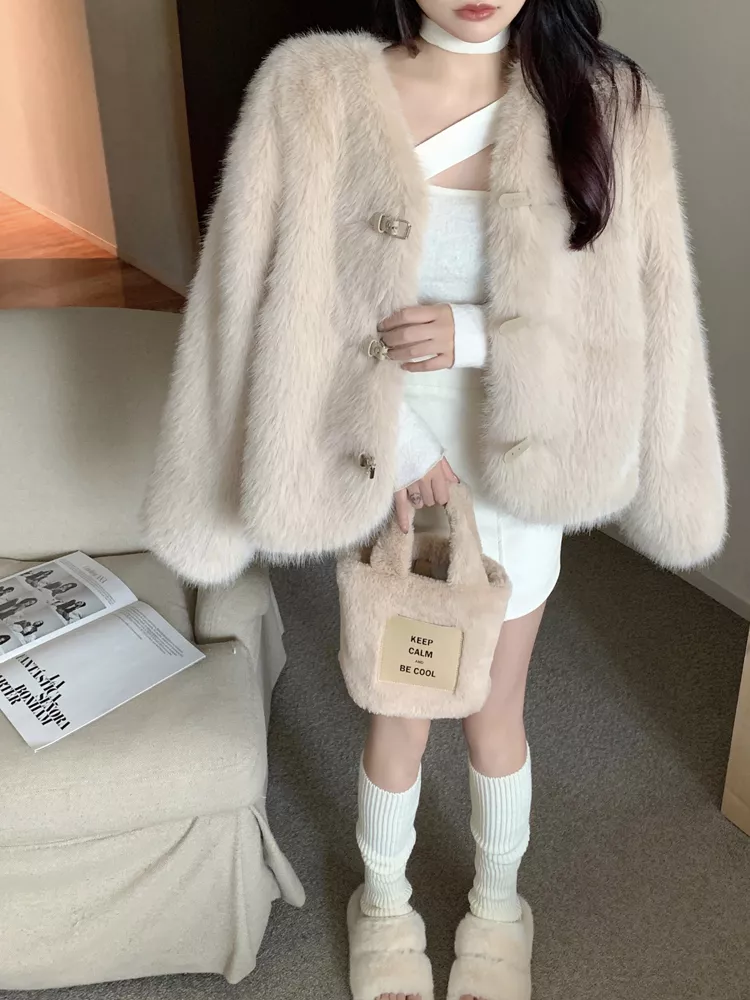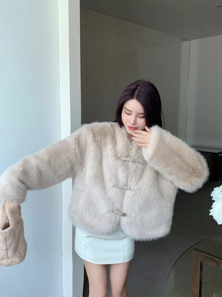 Giacca Cappotto Pelliccia Donna Ecologica Sintetica Morbida Beige 43966