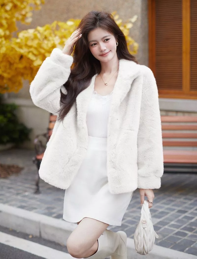 Giacca Cappotto Pelliccia Donna Ecologica Sintetica Morbida Bianco 26533