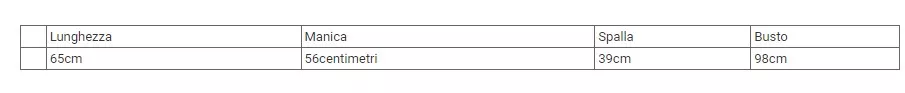 | Lunghezza | Manica | Spalla | Busto | |